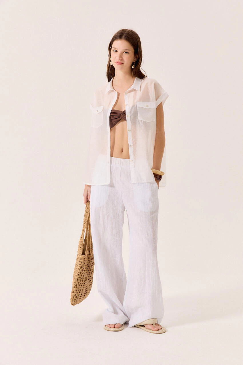 Camisa manga corta de gasa, con bolsillos. Composicion: 90% Tencel, 10% Poliester.